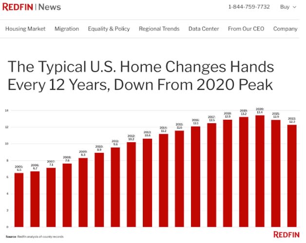 Homeowners stay in their homes 2x longer than 2 decades ago.