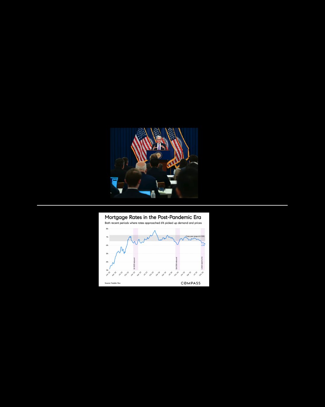 Mortgage rates are influenced by investor expectations more than by the Fed’s actions on a given day. When Chairman Powell signaled that additional cuts weren’t guaranteed, markets adjusted quickly, pushing mortgage-backed securities lower and mortgage rates higher. The takeaway: mortgage pricing reacts to perceived future policy, not to the rate announcement itself. Until economic data shows a clearer slowdown, the 30-year fixed rate may remain stuck in this mid-6% range.